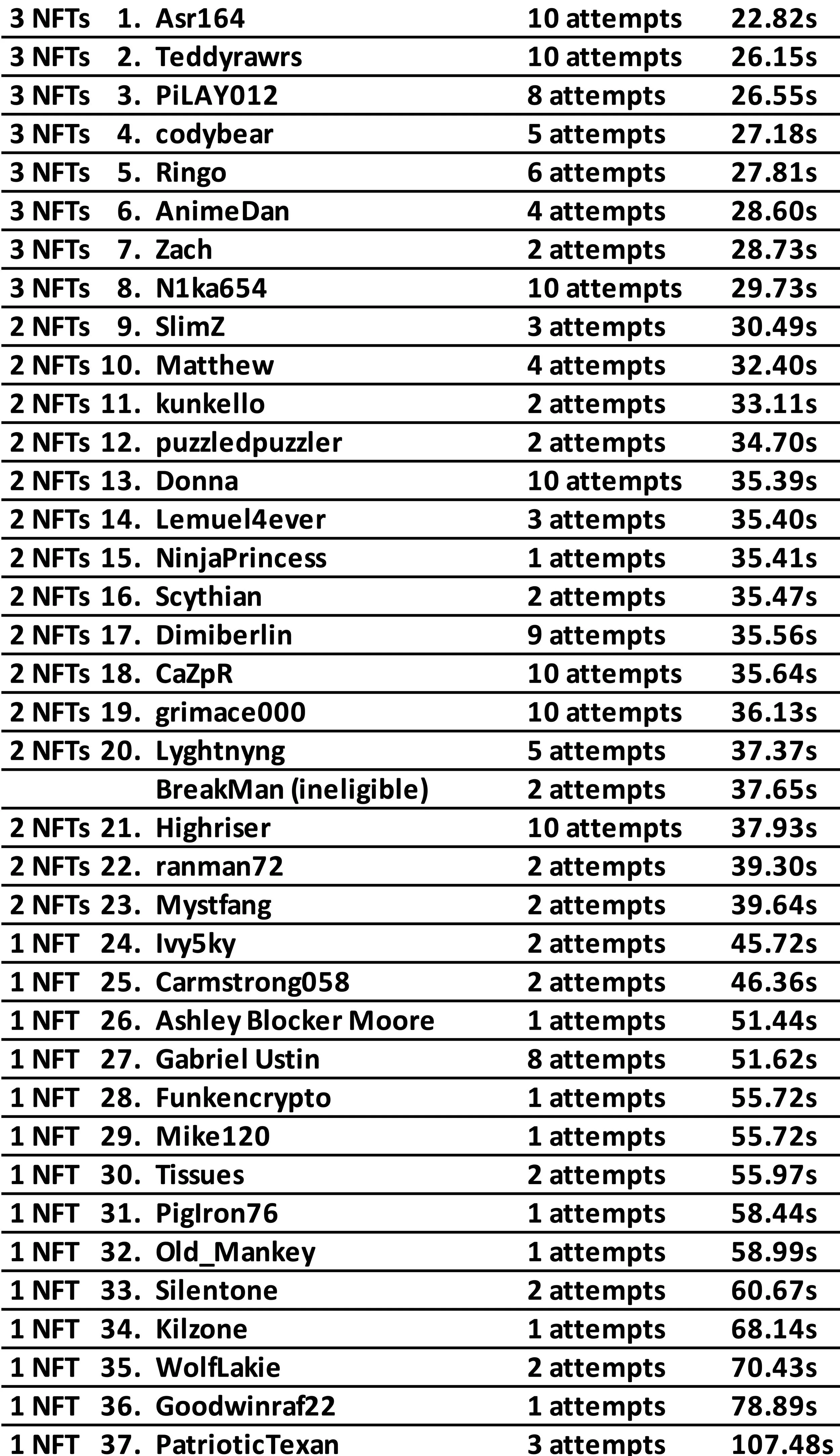 THE FIRST 20 PLAYERS THAT COMPLETED THEIR 1ST ATTEMPT WIN A RANDOM “EPIC” POSTER NFT!